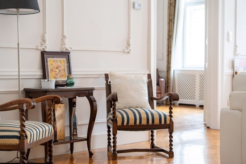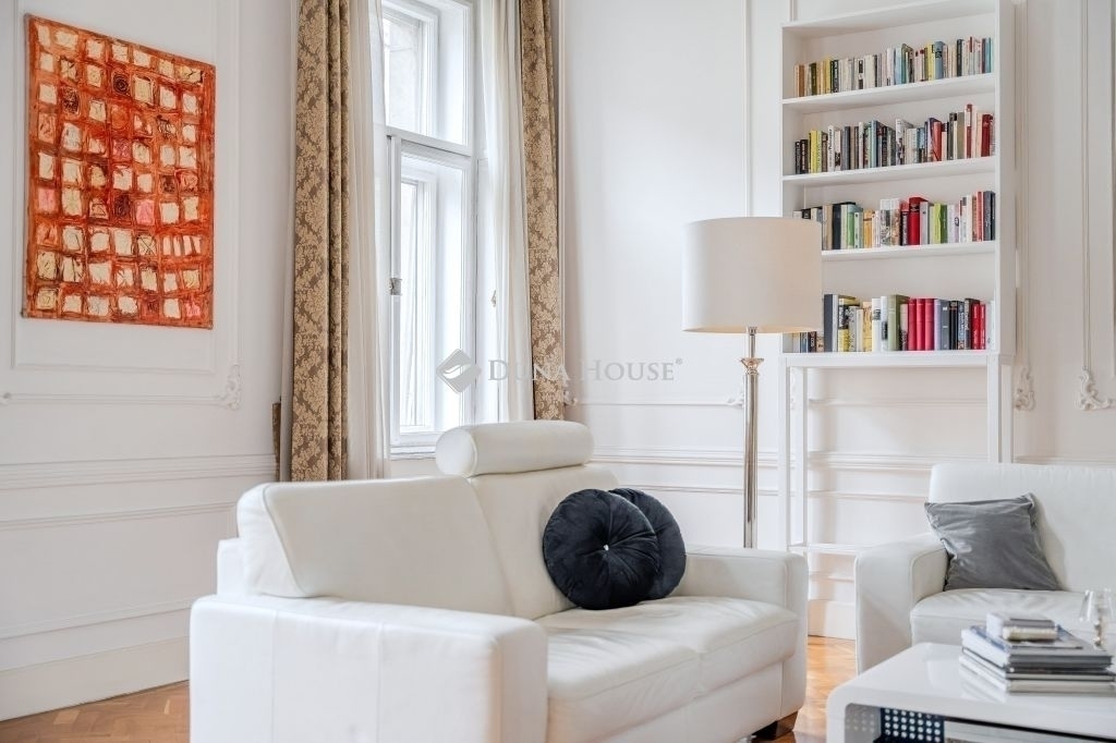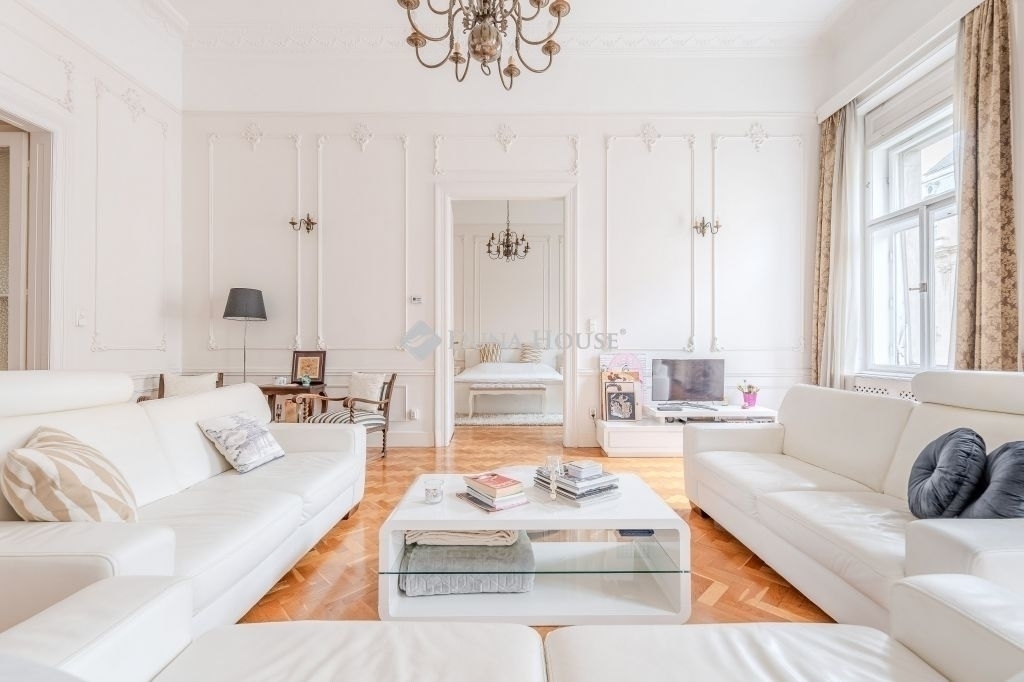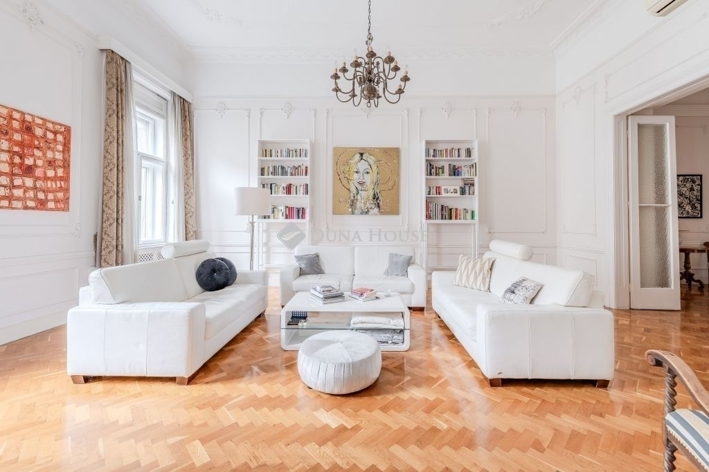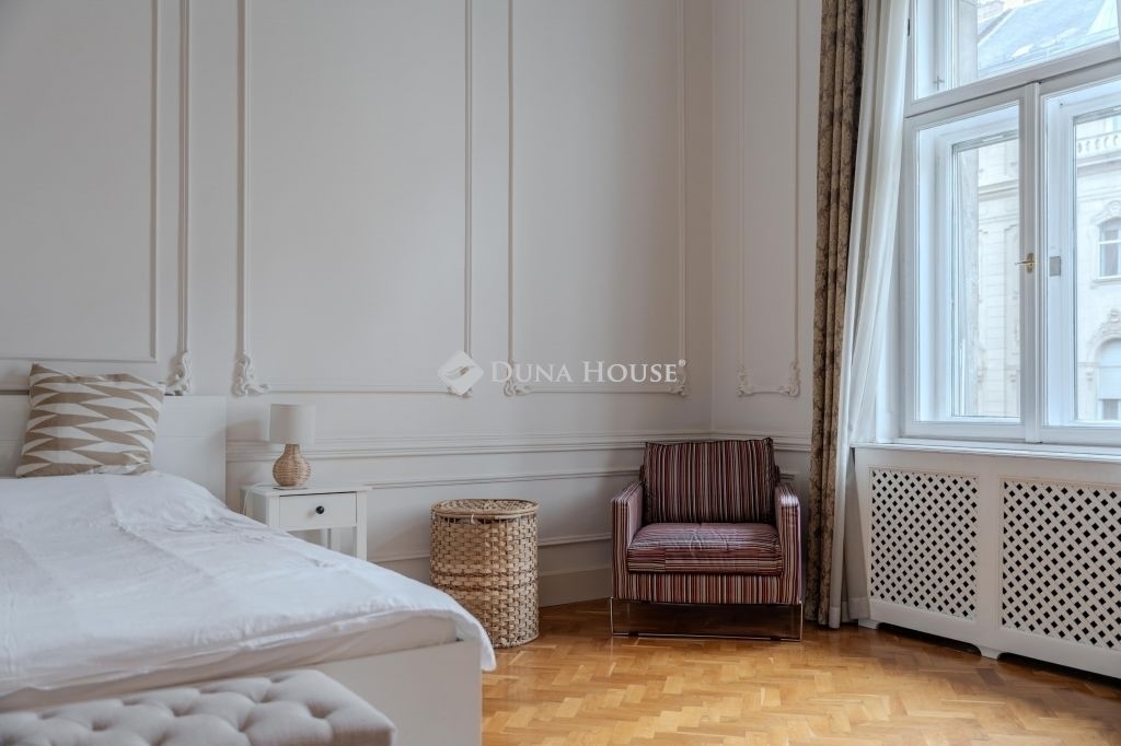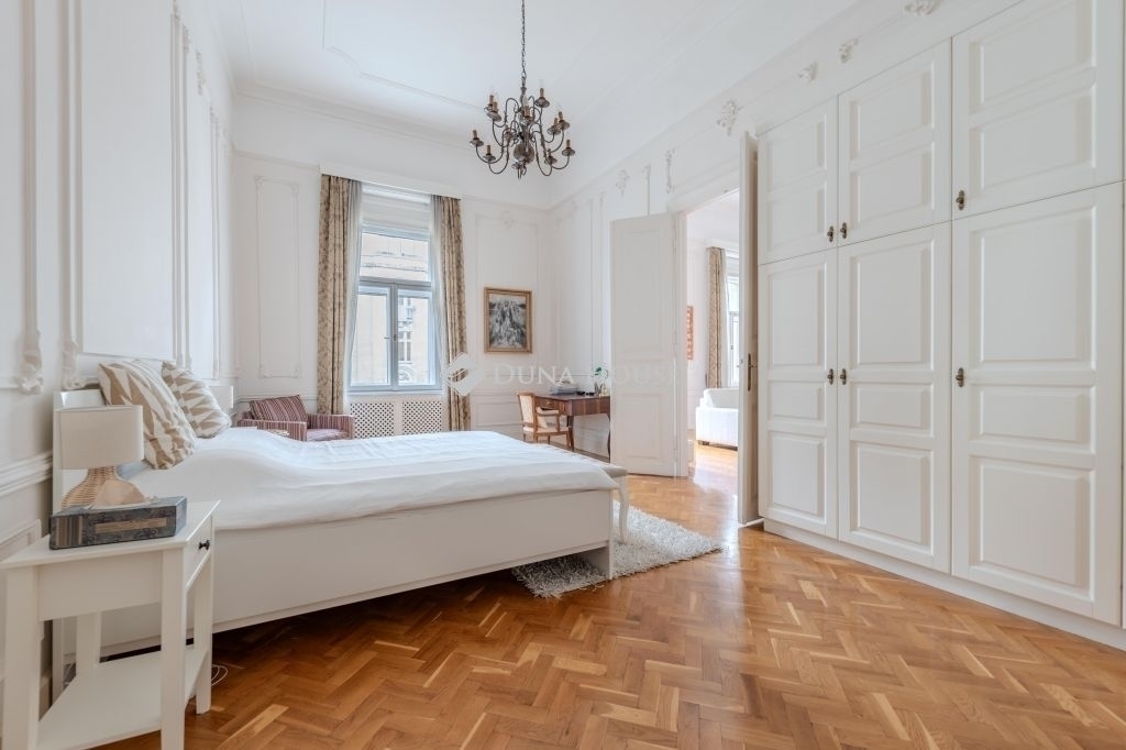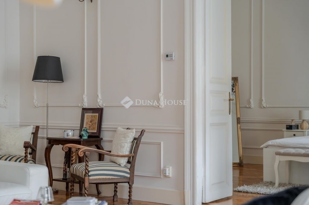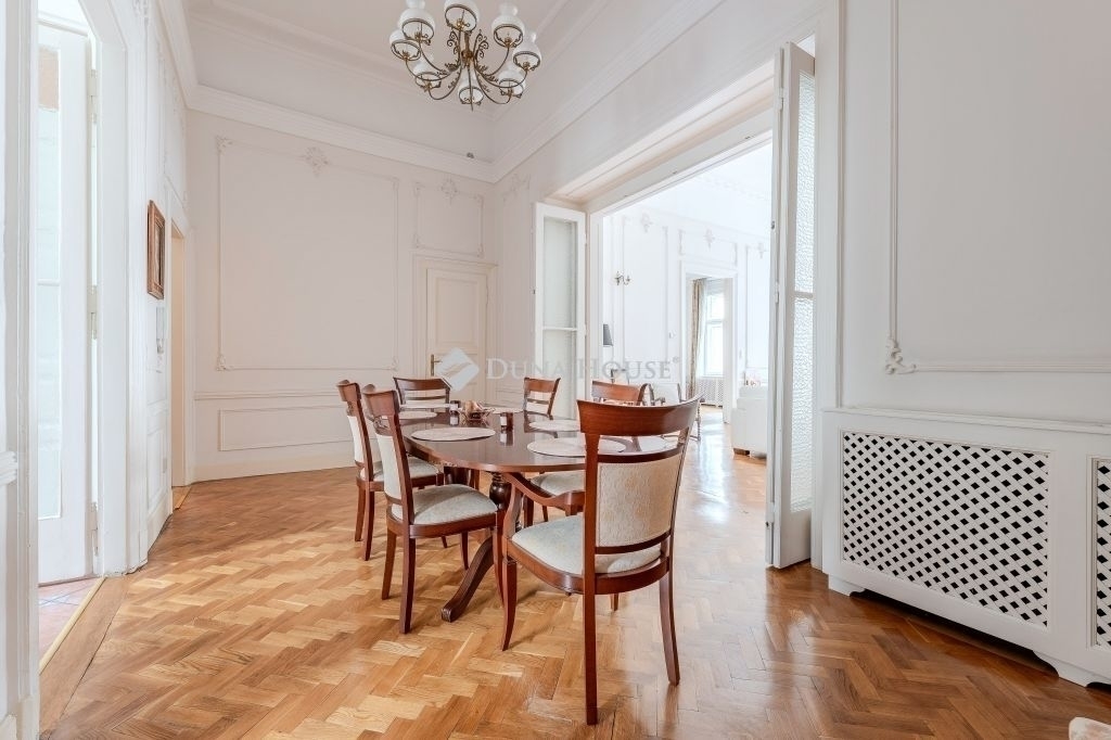 ****Eladó háromszobás nagypolgári lakás az Alkotmány utcában, a Parlament közelében****140 m² 4,34 m belmagasság 2 háló 2 fürdő 3 WCEladó Budapest V. kerületének egyik legpatinásabb utcájában, az Alkotmány utcában tágas, nagypolgári lakás.Az Alkotmány utcában, a belváros szívében fekszik, Lipótváros részeként, magas presztízzsel járó környéken, közel a Parlamenthez,és a Duna-parthoz, számos intézményhez, szolgáltatáshoz.A második emeleten lévő lakás kiváló elosztású: tágas előtér, nagy étkező harmonikaajtóval a nappaliba, két hálószoba, két fürdőszoba és 3 WC biztosítja a kényelmet.A hatalmas belmagasság, a klasszikus stukkódíszítés, az eredeti történelmi fa nyílászárók ,spaletták ,és a világos, utcai ablakok egyedülálló nagypolgári hangulatot teremtenek.A fűtés gáz cirkó. Riasztó,és légkondicionáló van.Az ingatlan ideális választás azoknak, akik szeretik a tágas tereket, és értékelik a régi polgári otthonok eleganciáját.A nagypolgári lakások tulajdonságai miatt-nagy belmagasság, eredeti részetek, vonzóak az igényes lakók,és a befektetők számára is.A környék kiváló infrastruktúrával, kulturális és üzleti központok közelségével teszi ezt a lakást igazi értékálló befektetéssé.Irányár: 319 000 000 Ft