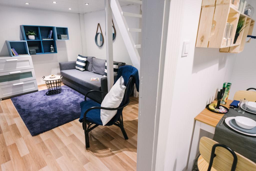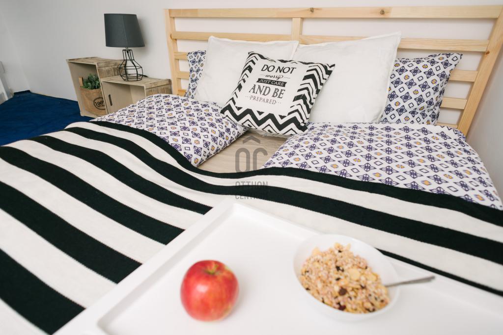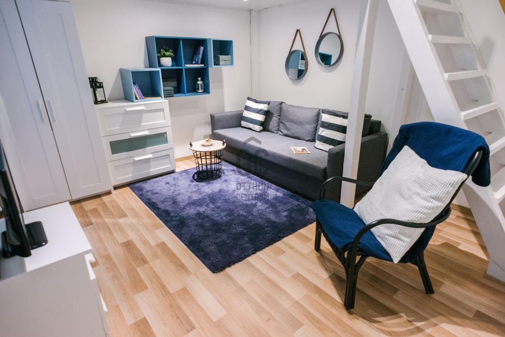 A lakás egy tágas szobával és egy jól felszerelt fürdőszobával rendelkezik, amely a modern életvitel minden igényét kielégíti.