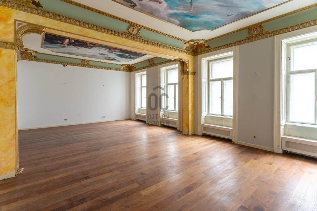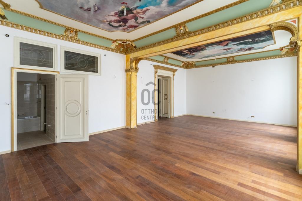 A terek különleges hangulatát eredeti, míves freskók adják, amelyek egyedi, művészi karaktert kölcsönöznek a lakásnak. A magas belmagasság, a tágas terek, a hatalmas ablakok és a finom részletek igazi nagypolgári eleganciát árasztanak.