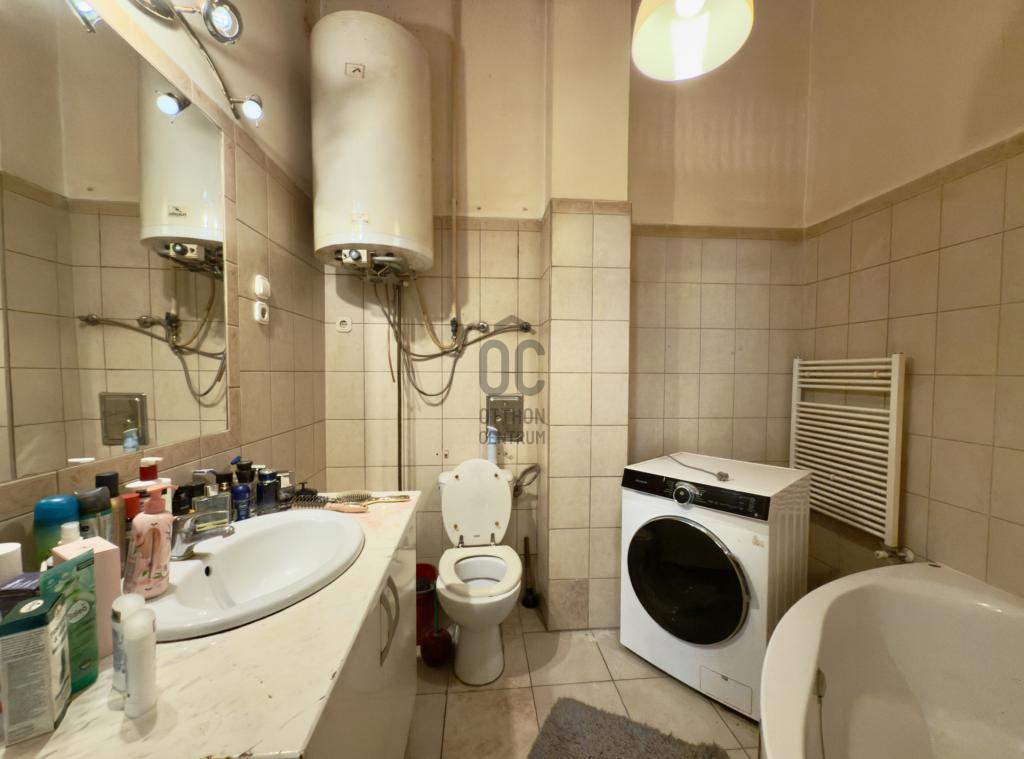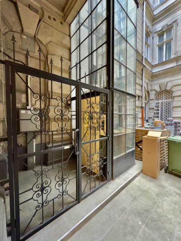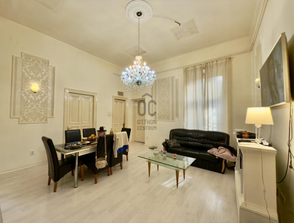 Eladó egy magas belmagasságú (4 m), igényesen kialakított, amerikai konyhás nappali + 2 hálószobás lakás egy rendezett, klasszikus polgári házban.