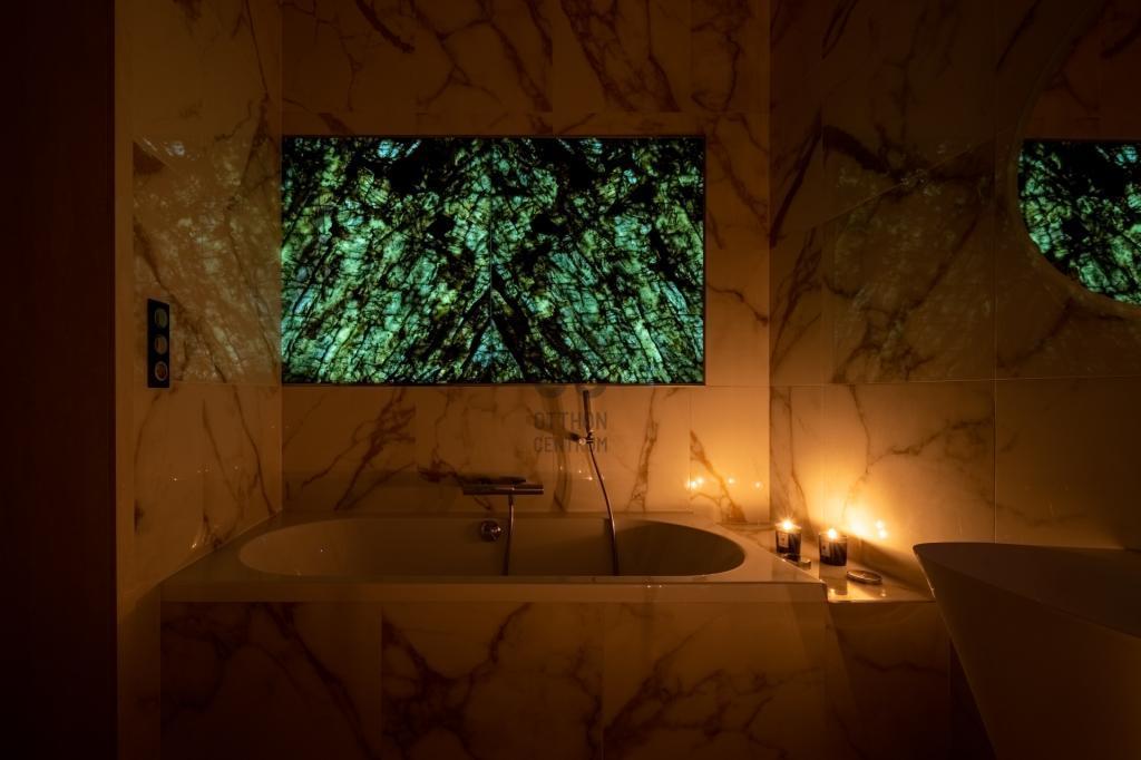 - Charcoal Flow TV – fal 348 db világító rózsakvarc betéttel