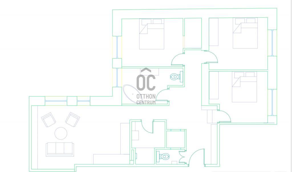 Elrendezés: Nappali-étkező-konyha egy légtérben, 3 hálószoba, 2 fürdőszoba, külön mosdó, gardróbszoba, közlekedő, saját használatú előtér.