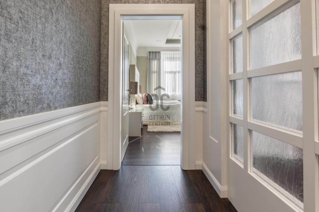 Elegáns, 3 szobás, erkélyes lakás, igényes bútorzattal eladó, pezsgő, modern, mégis klasszikus hangulatú környezetben.