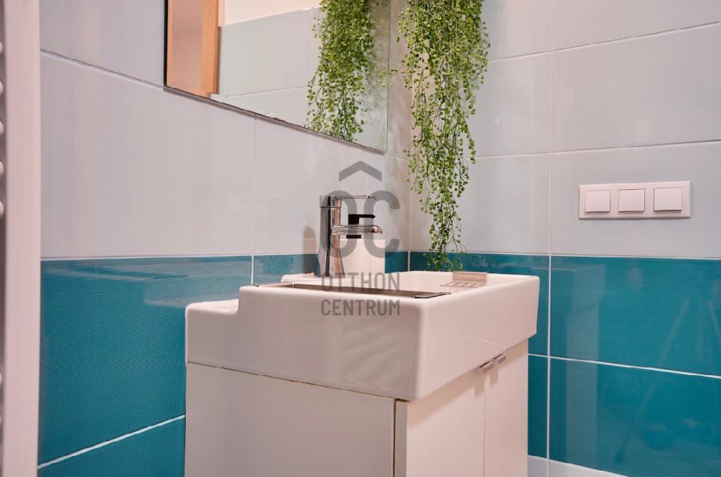A 67 m²-es alapterület kivételesen jól szervezett: a tágas nappali mellett két szeparált hálószoba biztosít teljes értékű életteret akár a hétköznapi használathoz, akár reprezentatív vendégfogadáshoz. A DNY-i tájolás napfényben fürdeti a lakást, kiemelve a terek harmóniáját és hangulatát.