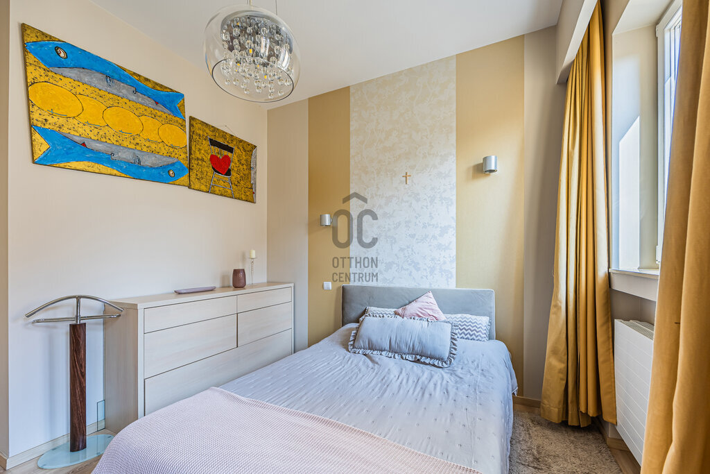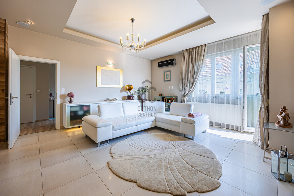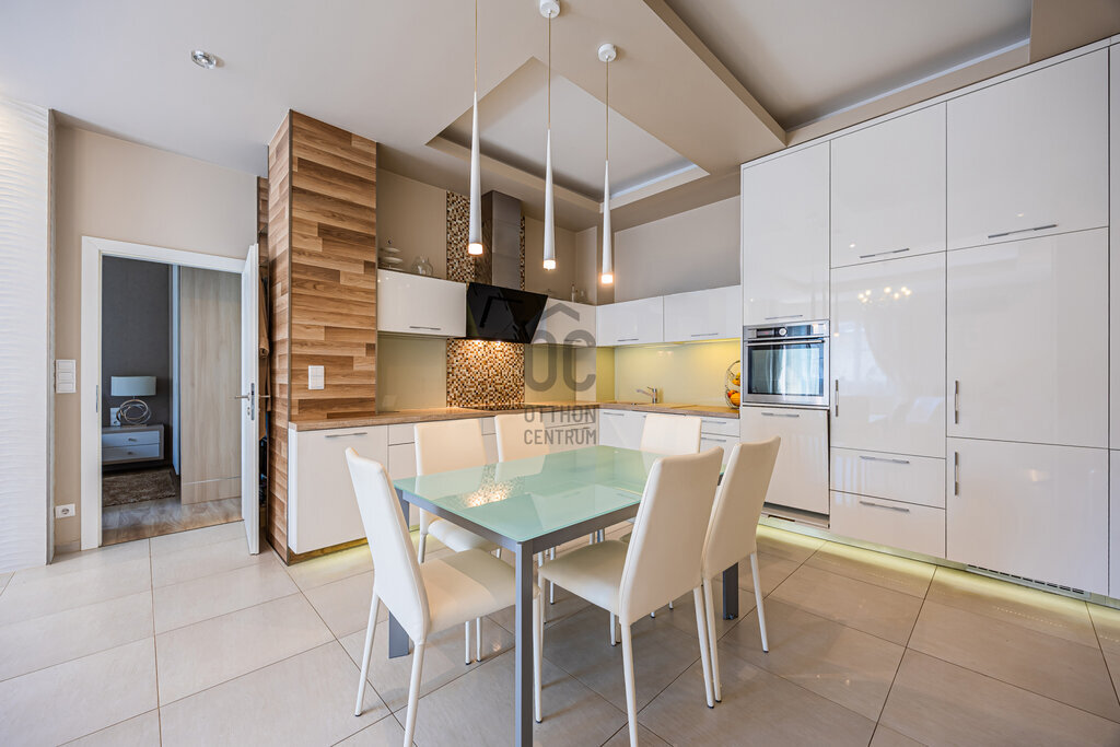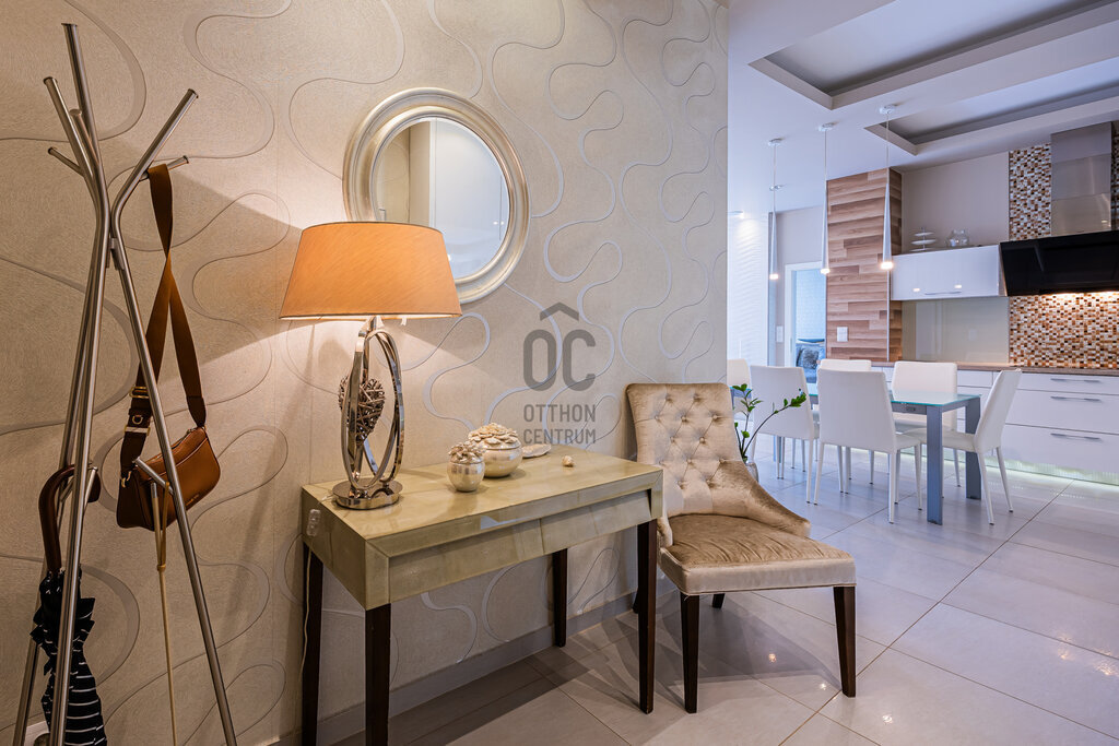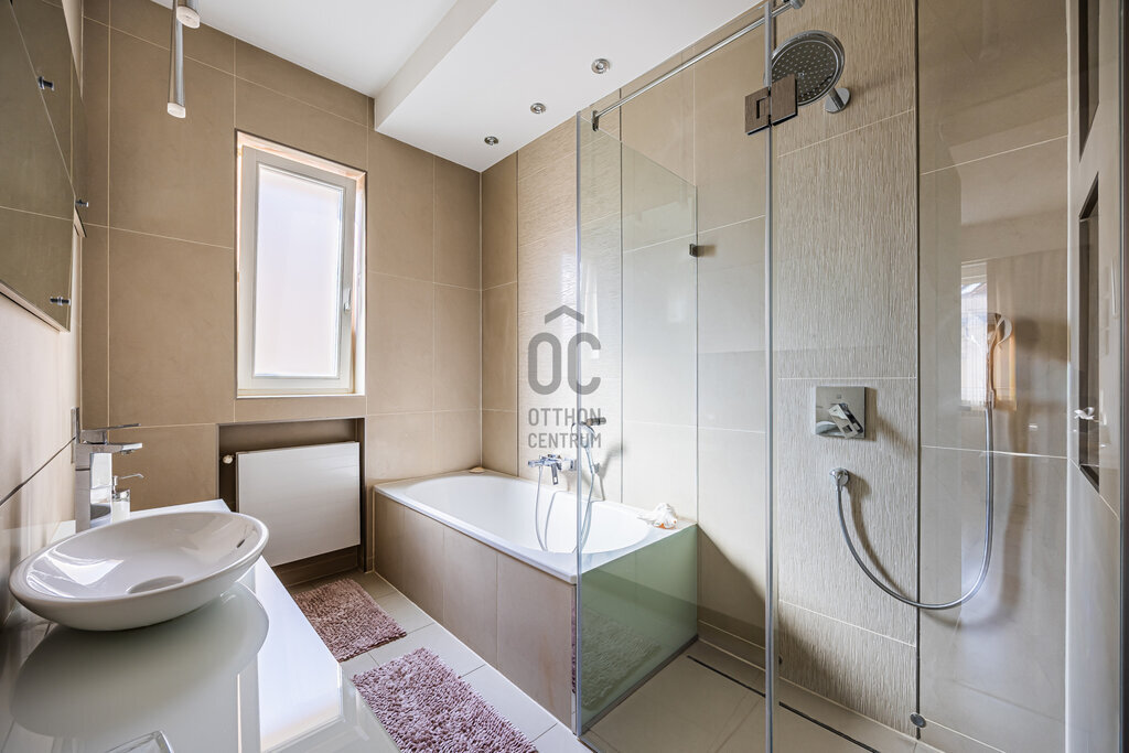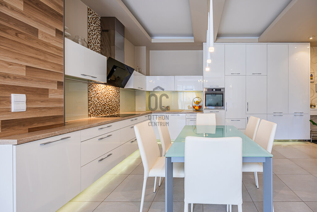 Kiváló minőségű fa nyílászárók, prémium burkolatok és szaniterek, egyedi fűtőtestek és klíma, minden hangulatnak megfelelő világítás, elegáns, gépesített konyha, egyedi design jellemzi. Ide az új tulajdonosnak csak beköltöznie kell.