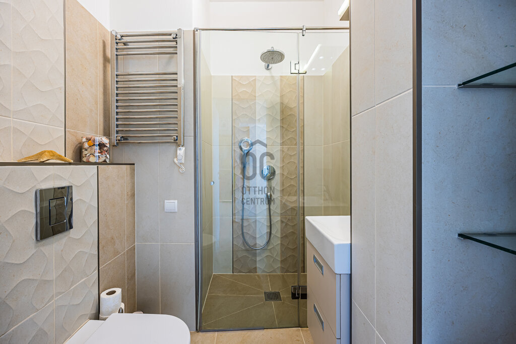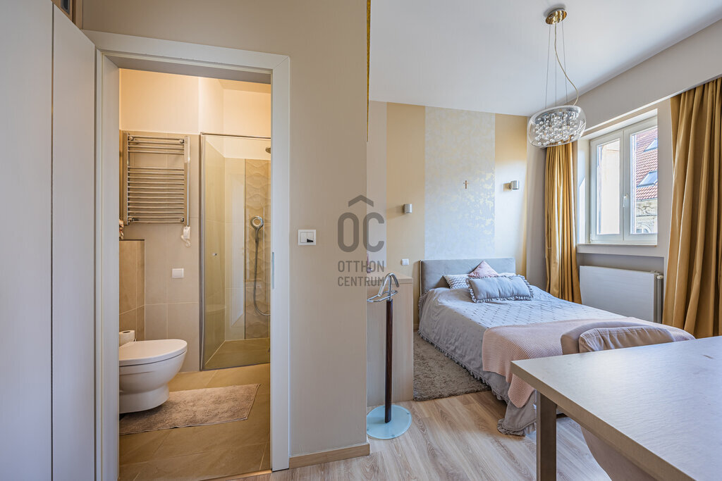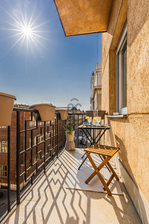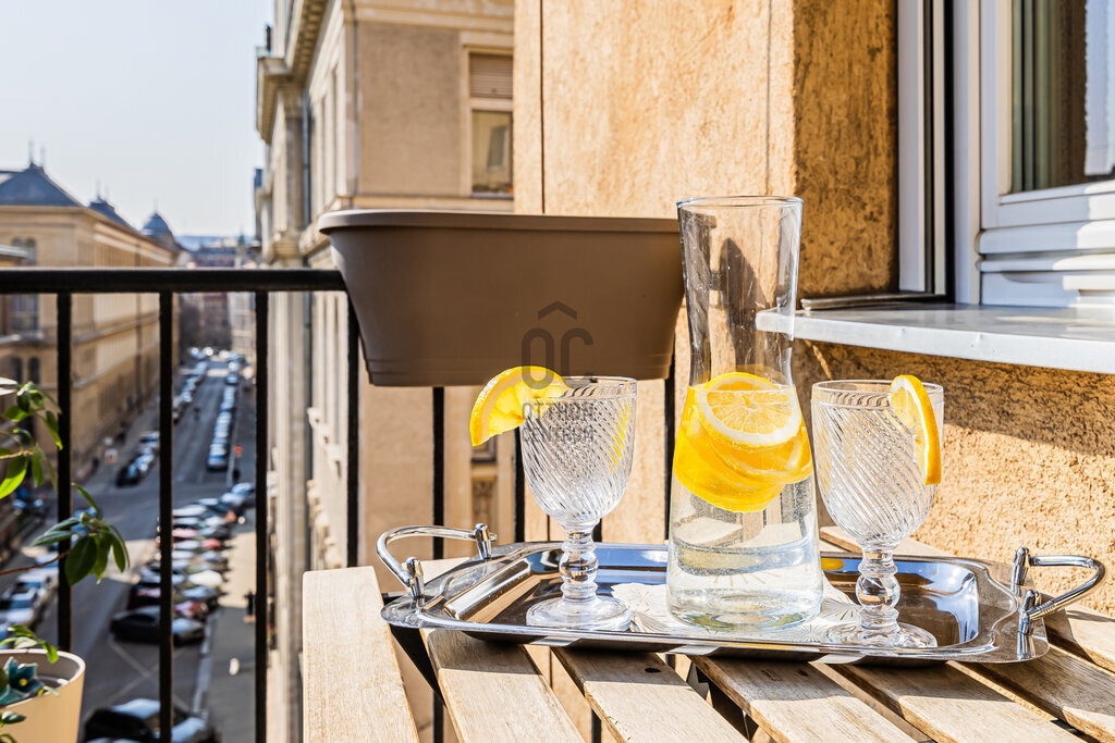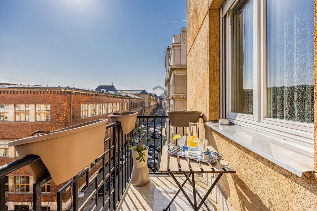 A lakás különlegessége a hangulatos erkély, ahonnan egy kellemes italt kortyolgatva élvezhetjük a belváros nyüzsgését.