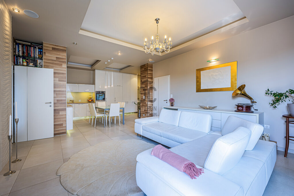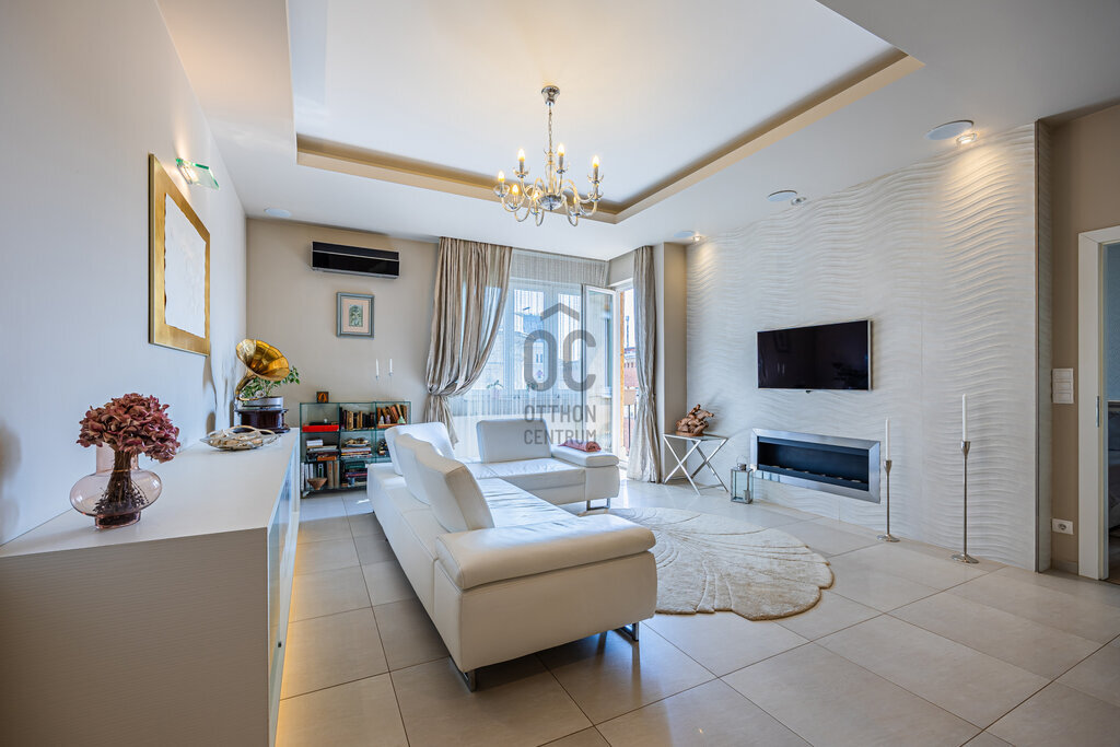 Tágas, átlátható terek, egyedi elrendezés jellemzi ezt a 89 m2-es luxus lakást, mely hatalmas ablakainak és remek fekvésének köszönhetően egész nap fényárban úszik!