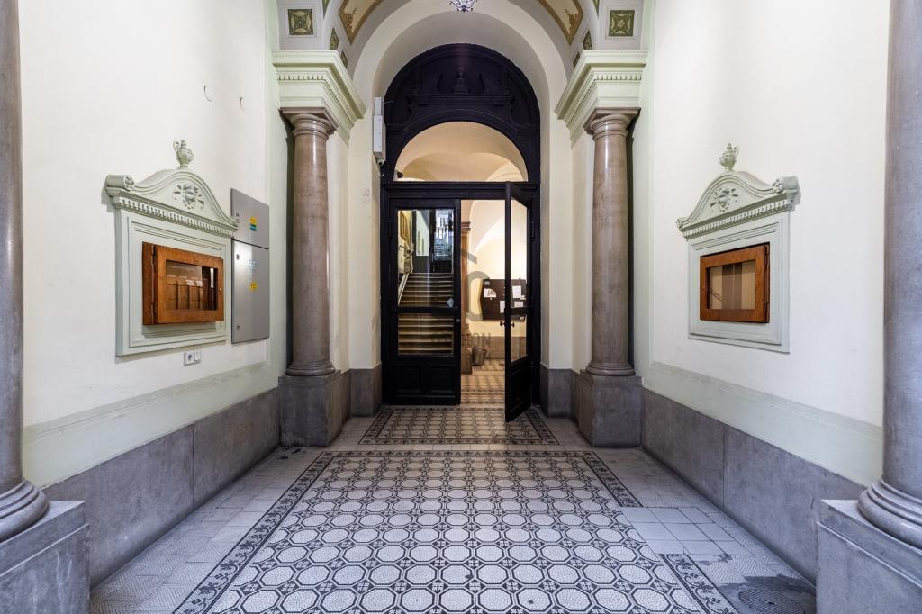 Az épület historizáló stílusban, 1895 körül épült, patinás homlokzattal és közös terekkel. Az elhelyezkedés központi, mégis nyugodt, minden fontos szolgáltatás, tömegközlekedés, üzletek és kulturális lehetőségek néhány perces sétával elérhetők.