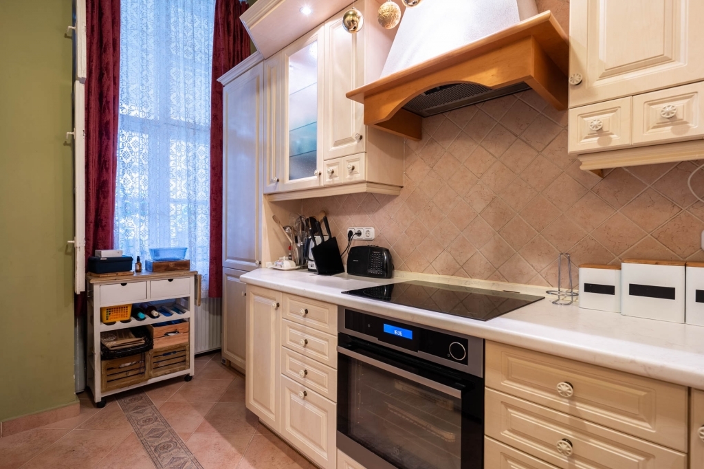 A jó állapotú lakás helyiségei tágasak, belmagassága 460cm.