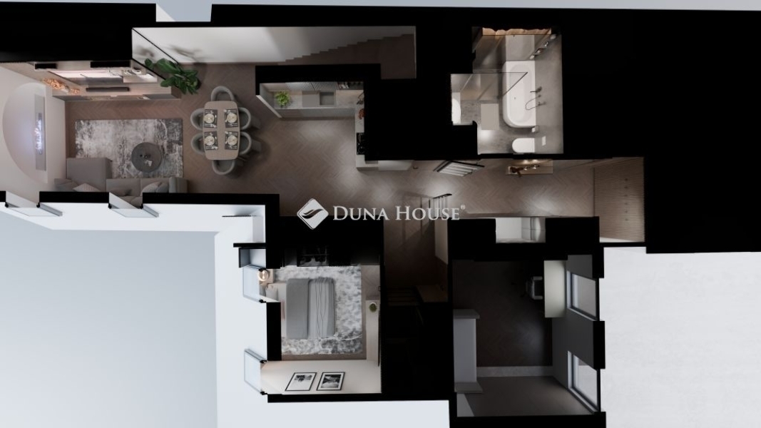 Ez a lakás ideális választás azoknak, akik egy világos, tágas és jól tagolt tetőtéri otthonra vágynak a belváros szívében, ahol a funkcionalitás és a stílus kéz a kézben jár.