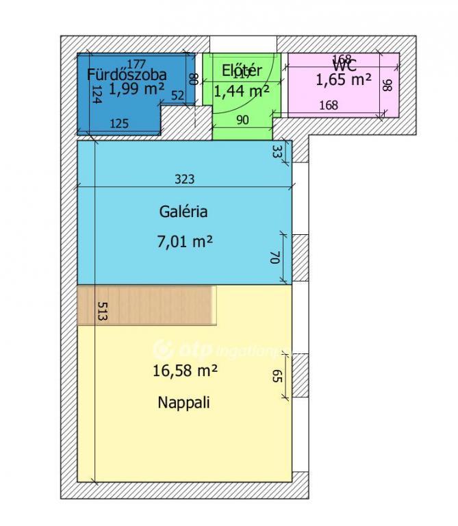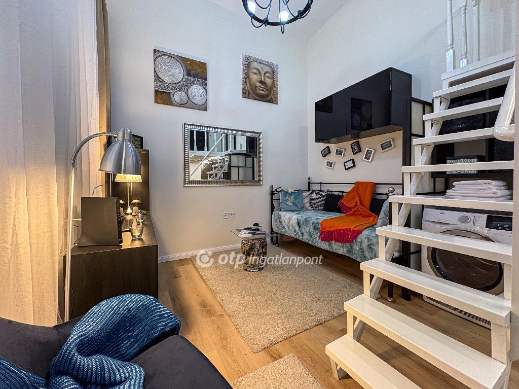 Az ingatlan 22 nm alapterületű, melyet egy 7 nm-es galéria egészít ki, és egy kiváló állapotú, téglaépítésű, négyszintes, liftes társasház 3. emeletén található. A lakás az utcáról akadálymentesen megközelíthető.