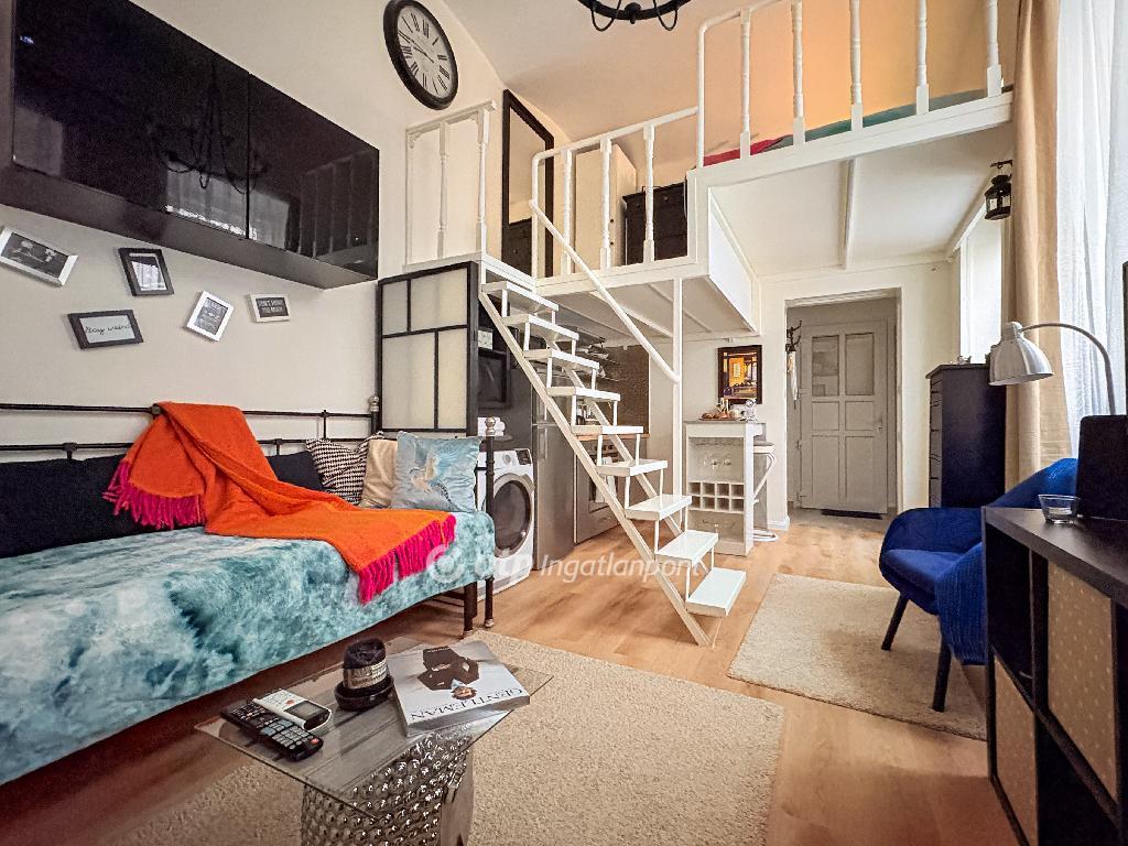 The property is 22 sqm plus a 7 sqm mezzanine level, located on the 3rd floor of a well-maintained, brick-built, four-storey building with an elevator. The apartment is barrier-free from street level.