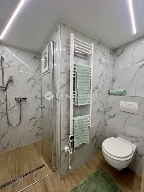 A lakás frissen felújított, teljesen berendezett és gépesített. A gépesített konyhába mosogatógép is beépítésre került, amely az ár részét képezi. A padlófűtés biztosítja a kellemes hőérzetet, a klíma előkészítése megtörtént. A lépcső alatti rész praktikusan kihasznált, ide került a mosógép és a bojler. Az ingatlan per- és tehermentes, 1/1 tulajdonban van.