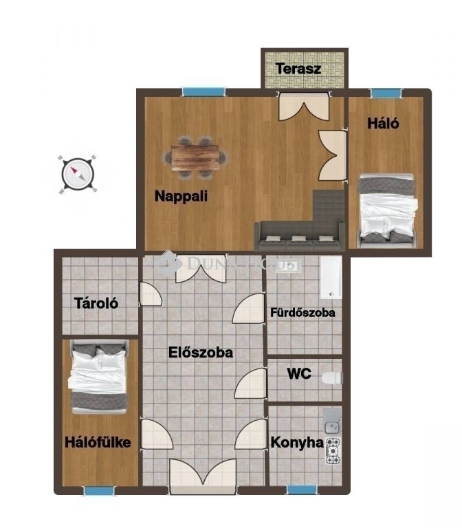 * Nappali + 2 hálószoba ideális elrendezés pároknak, kisebb családnak vagy kiadásra
