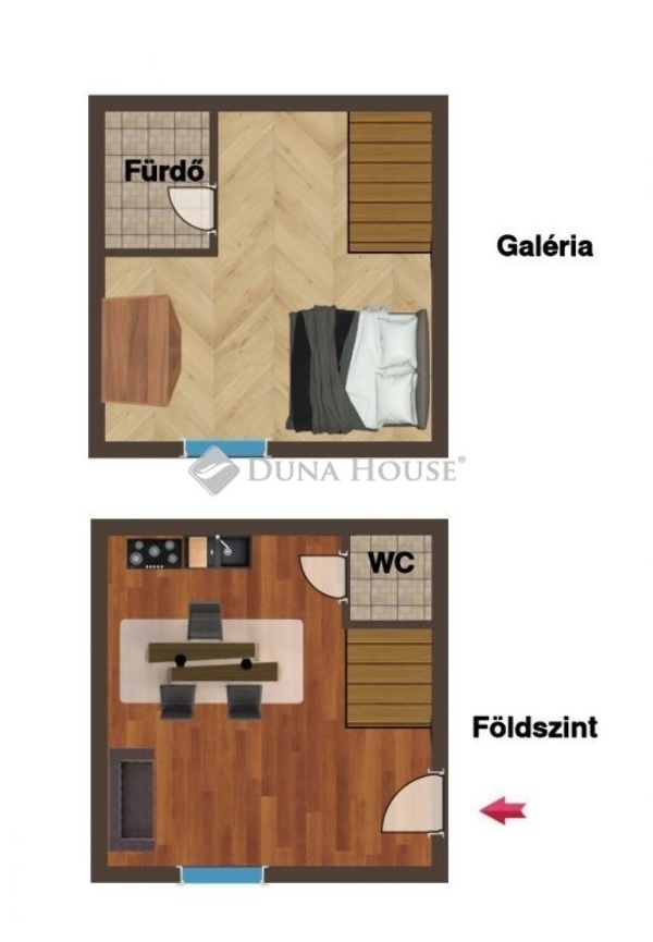 2025-ben felújított, lakberendező által tervezett, belső két szintes, 35 négyzetméteres, költségmentes, azonnal költözhető lakás keresi új gazdáját.