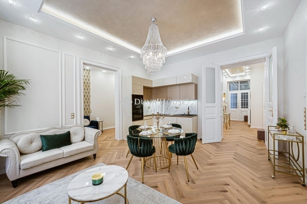 NYUGATI PÁLYAUDVAR KÖZELÉBEN, frissen felújított, nagy lakás eladó liftes házban eladó. A két fürdőszobás, 2. emeleti lakás különlegessége egy saját használatú, teraszként funkcionáló, szeparált folyosórész. Mindhárom szoba külön bejáratú. Két hálószoba a csendes belső udvarra, míg a tágas nappali 3 hatalmas ablaka az utcára néz. A felújítás során a teljes fűtési rendszert kicserélték, új gáz-cirkó kazánt építettek be. Az egyik hálószobához jól kihasználható gardrób szoba tartozik, mellyel a háló igény szerint akár bővíthető is. A konyha a vele egy légtérben lévő étkezővel nagy családok számára is kényelmes teret biztosít. A lakás elrendezése lehetővé teszi, hogy minimális átalakítással két kis lakást hozzanak létre belőle. Tömegközlekedés, bevásárlási lehetőségek a lakás közvetlen közelében! Kitűnő lokációjának köszönhetően egyaránt alkalmas befektetők, illetve családok számára is.