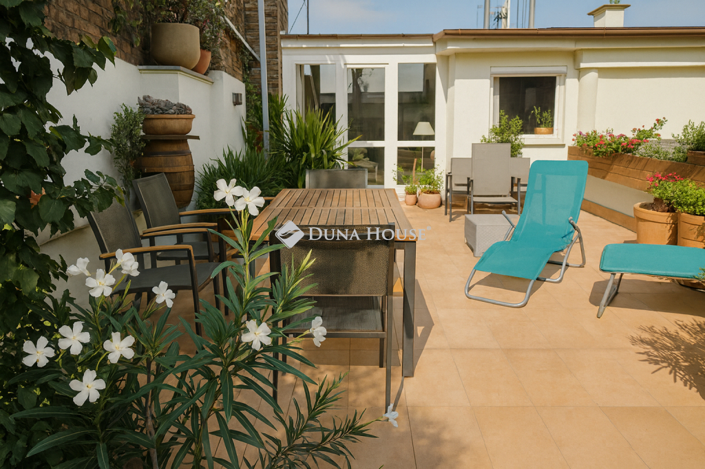 Eladó panorámás, duplakomfortos, két szintes lakás a Kodály körönd közelében!A belváros szívében, mégis csendes környezetben kínálunk megvételre egy különleges, kétszintes otthont.A lakás 2017-ben épült ráépítésként, egy 1900-as évek elején épült, patinás ház tetején, így a régi polgári környezet és a modern kialakítás előnyeit ötvözi.Az ingatlan alapterülete 3 hálószobát, tágas nappalit konyhával, fürdőszobát, összesen 3 WC-t, praktikus tárolót, valamint egyedülálló, 59 m²-es teraszt foglal magában.. A lakás alapterülete 97.5 m2, 12 m2 télikert és a fenti 59m2-es terasz. A teraszról páratlan panoráma nyílik a budai hegyekre és a város látképére tökéletes helyszín baráti összejövetelekhez vagy nyugodt pihenéshez.A lakás fűtését korszerű gázcirkó rendszer biztosítja.Főbb jellemzők:két szint, duplakomfort2017-ben épült ráépítés3 hálószoba + nappali amerikai konyhával3 WC, fürdőszoba, tárológázcirkó fűtéshatalmas, 60 m²-es terasz panorámávalEz az ingatlan ritka lehetőség azok számára, akik belvárosi környezetben keresnek egy tágas, különleges otthont, amely egyszerre modern és élhető.Szeretnéd, hogy készítsek hozzá egy rövidebb, figyelemfelkeltő plakát- vagy Facebook-hirdetés szöveget is?Ezt mondtad:Igen szeretném