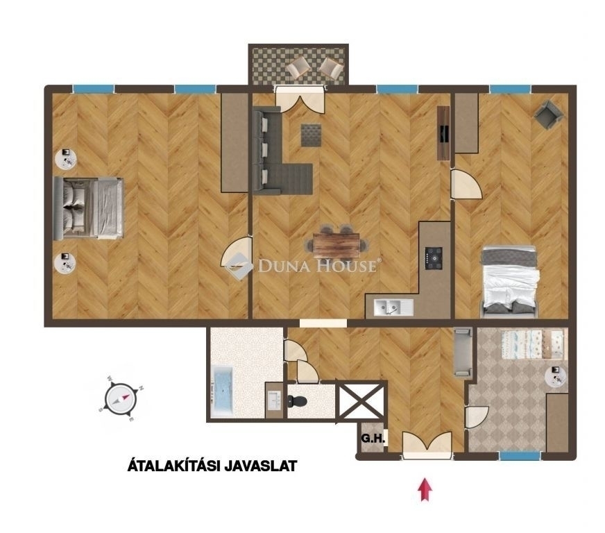 - Többfunkciós hasznosításban gondolkodóknak, akár lakótér plusz rendelő, ügyvédi iroda kialakítása is kivitelezhető