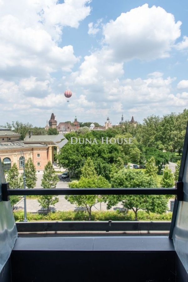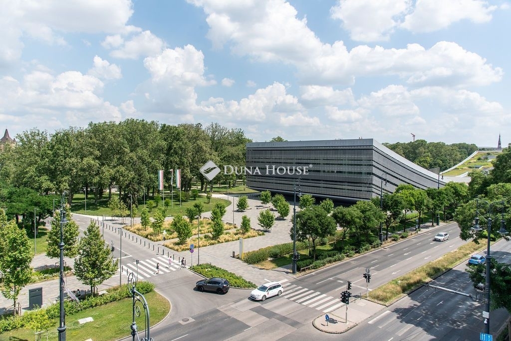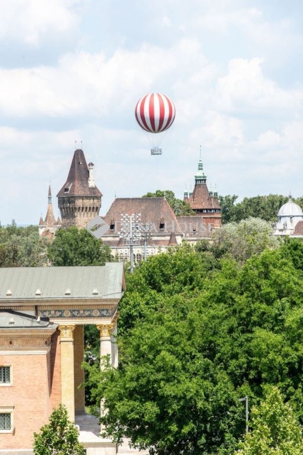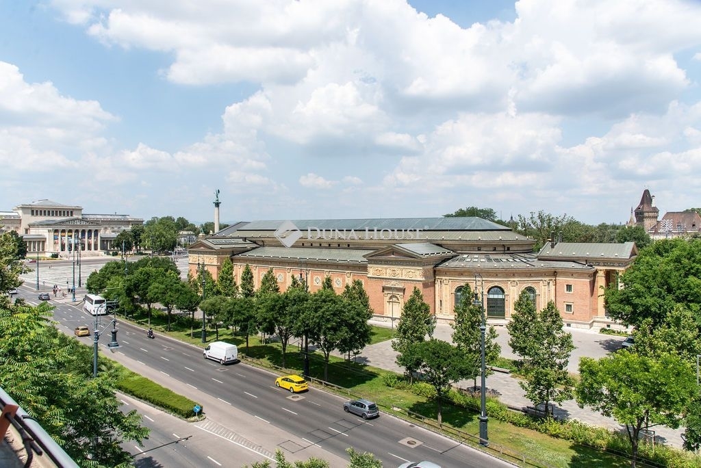 A lakás ablakaiból lenyűgöző kilátás tárul elénk: a Szépművészeti Múzeum klasszikus homlokzata és a Néprajzi Múzeum ikonikus épülete rajzolja a panorámát – különösen látványos esti fényekkel.