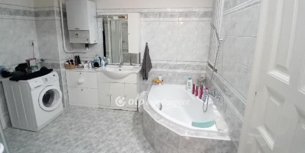 A lakásban három nagy szobából kettő az ucára, egy az udvarra néz. A fürdőszobája is méretes, kád és tusoló is található benne. A WC külön bejáratú. Jól felszerelt konyhája egyben van az étkezővel. A konyhából egy nagy kamra nyílik, amiből még egy kis spejzba jutunk. A fűtést gáz-cirkó kazán biztosítja. Négyméteres belmagassága miatt kiválóan galériázható.