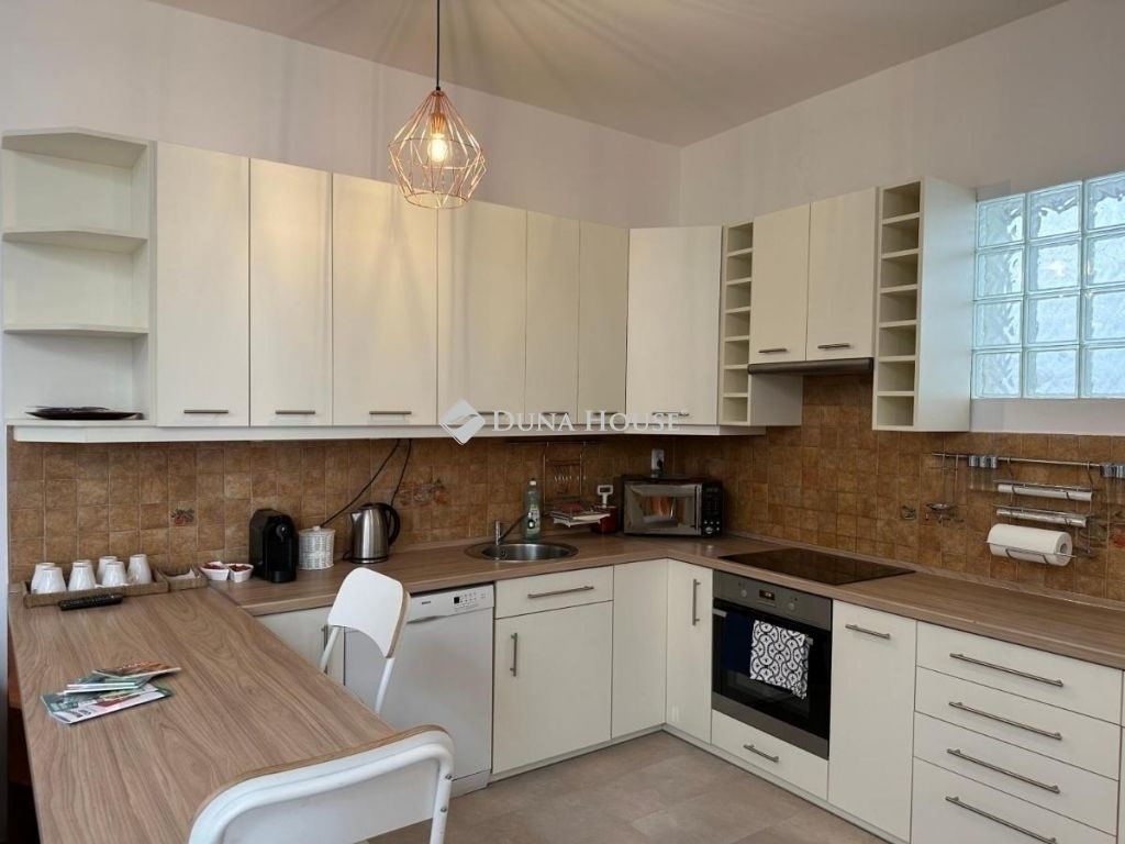 A tágas nappalikonyhaétkező letisztult, modern burkolatokkal és minőségi beépített bútorokkal készült. Innen csigalépcső vezet fel egy galériára, ahol kényelmes hálórész kapott helyet. Ezen a szinten található még egy hálószoba, kamra, 2024-ben felújított zuhanyzós fürdőszoba, külön WC, valamint egy praktikus gardróbmosókonyha.