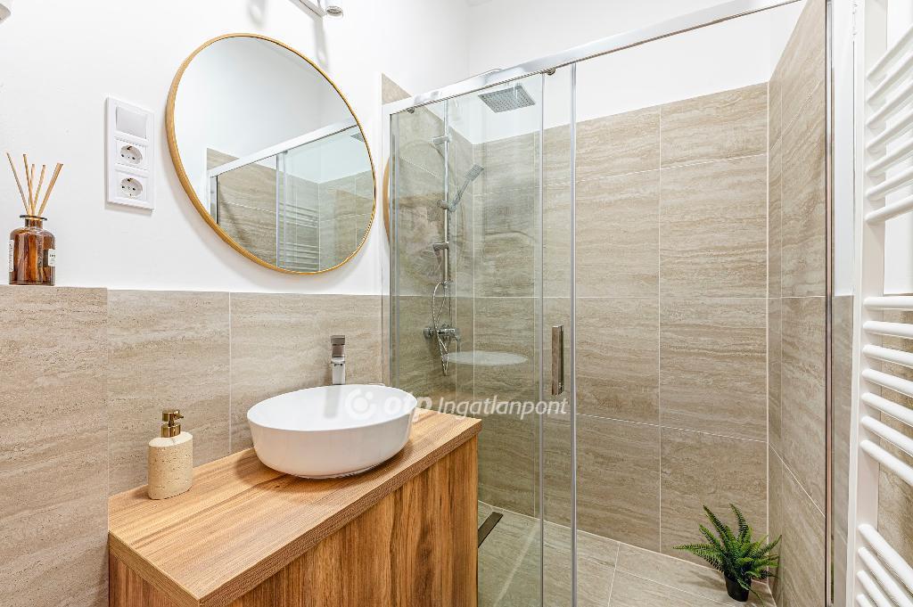 - egyedi tervezésű, épített zuhanyzó a fürdőben,