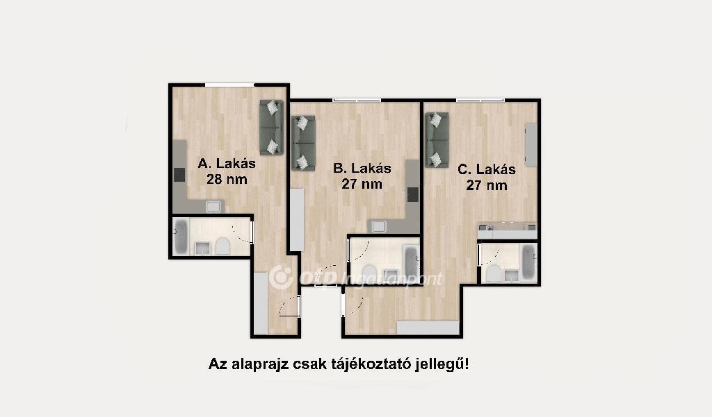 Az eredetileg 86 nm-es ingatlant három osztottak, így alakítottak ki egy 29, egy 28 és egy 27 nm-es műszakilag teljesen különálló lakást.