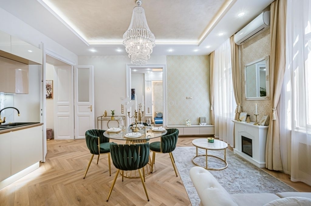 A 6.kerületben, a Nagymező utcánál, csendes, nyugodt egyirányú utcában eladó ez a remek hangulatú, minőségi anyagokkal felújított lakás!