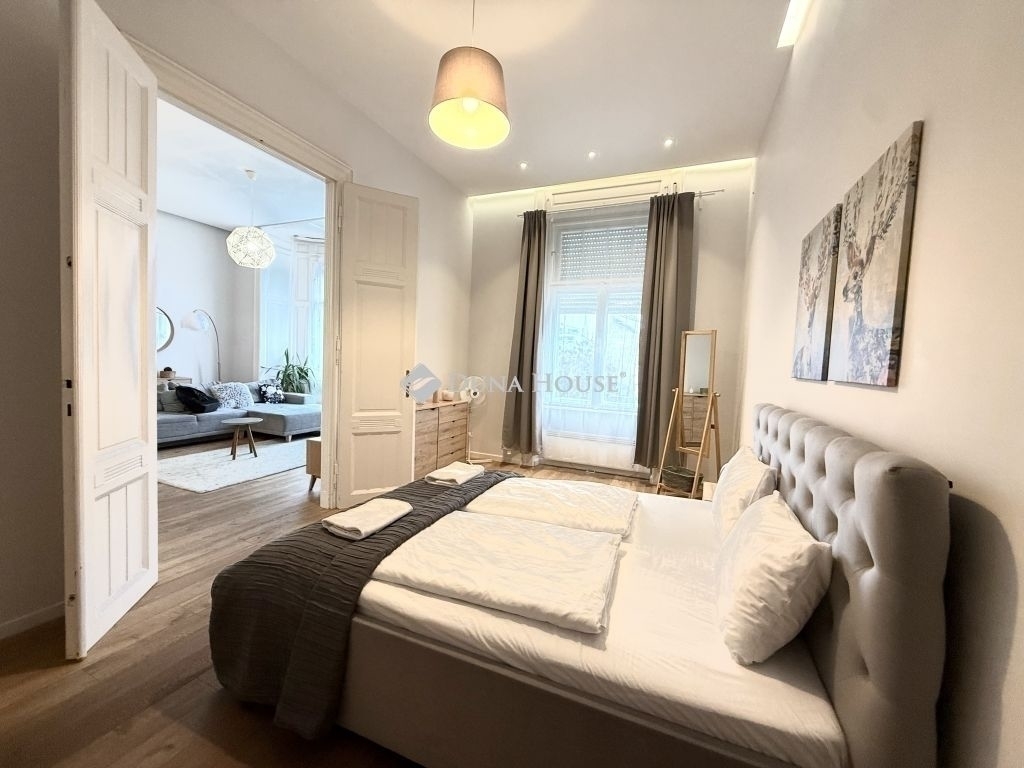 A Király utca kedvelt részén, a Székely Mihály utcánál megvételre kínálok egy 2. emeleti, 90 m²-es, nappali + 2 hálószobás, két fürdőszobával rendelkező, igényesen felújított lakást egy szép állapotú, karbantartott társasházban. Az ingatlan 2022-ben esett át teljes körű felújításon, elosztása praktikus és jól élhető: tágas amerikai konyha–étkező–nappali, valamint mindkét hálószobához külön, kényelmes méretű fürdőszoba tartozik. A ház 1904-ben épült, kívül-belül rendezett, folyamatosan karbantartott, klasszikus belvárosi hangulattal. Elhelyezkedése kiváló, a környék jól megközelíthető, mégis élhető, így az ingatlan ideális választás saját otthonnak vagy befektetésnek egyaránt. További információért és megtekintésért várom hívását. Hibás hirdetés bejelentése