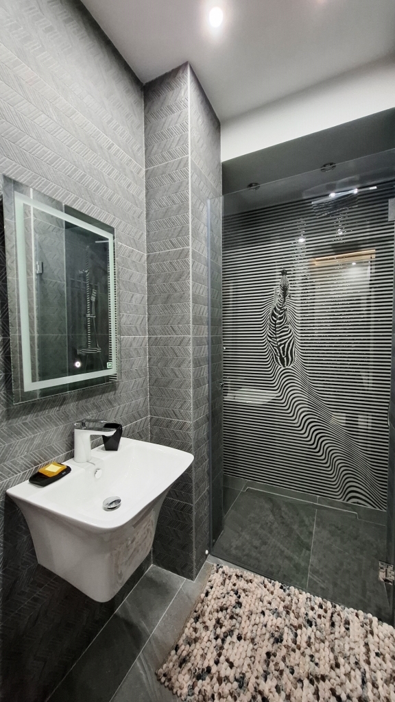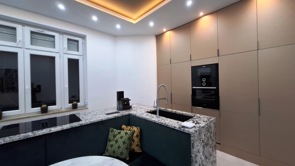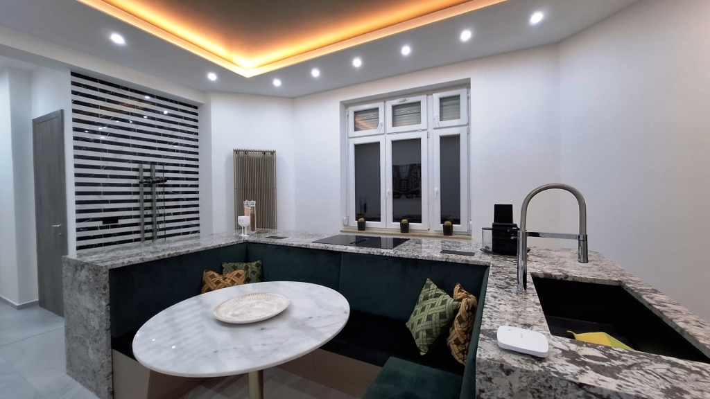 Az ingatlan felújításánál fontos szempont volt a minőségi anyagok használata, az elegáns letisztult életterek.