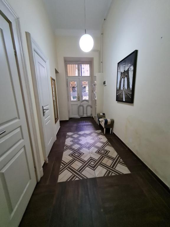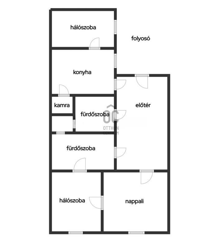 Elosztása: előszoba, nappali, 2 hálószoba, külön konyha, kamra, 2 fürdőszoba.