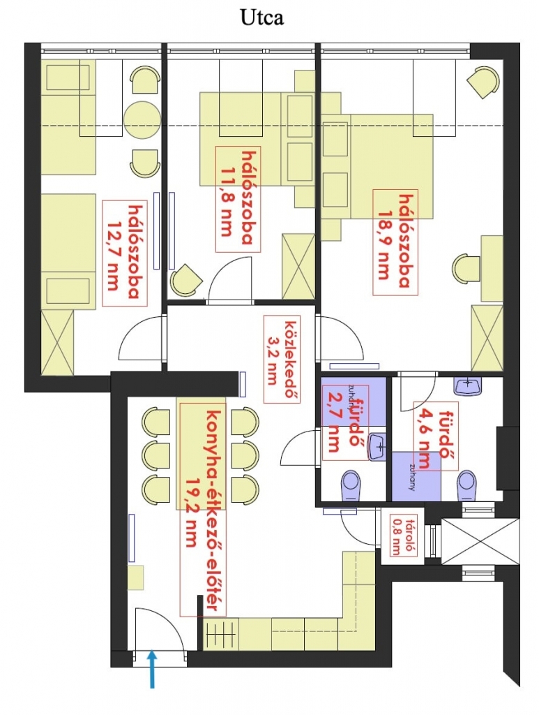 szoba 18.9 m²