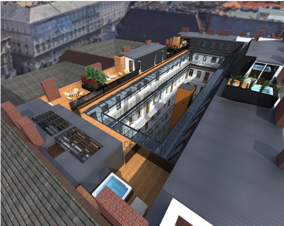 A lakások az UNESCO világörökség részét képező műemlék védettség alatt álló épület tejesen új építésű tetőterében helyezkednek el.