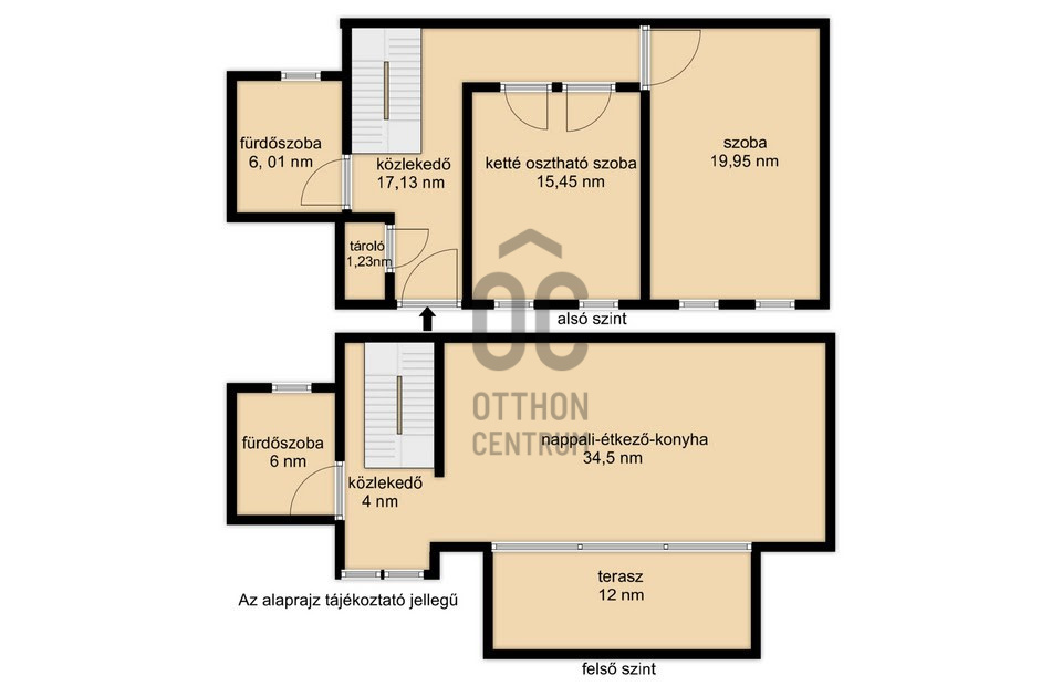 - napfényes, 3 szobás, két szintes lakás
