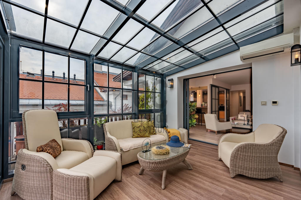 - A fűthető, professzionálisan kialakított, üvegezett télikert pedig egy négyévszakos nappalivá, dolgozószobává vagy zöldellő pihenőkertté válik, ami valódi ritkaság és luxus a belváros szívében.
