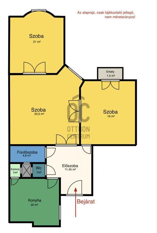 A 109 négyzetméteres lakás része egy 2 négyzetméteres erkély, valamint 3,8 méteres belmagasság, amely tágas érzést biztosít. Jelenlegi elrendezése nappali és két külön nyíló hálószobából áll, de könnyedén kialakítható egy harmadik, nagyobb hálószoba is.