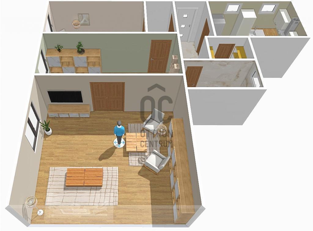 Mindhárom szoba állógalériával rendelkezik: a nappaliban fémvázas, gipszkarton burkolattal, a másik kettőben fa szerkezetű.