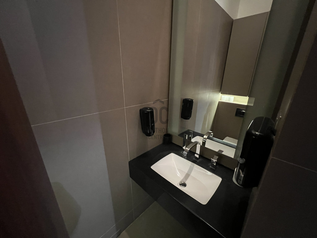 Az ingatlan jelenleg irodai funkcióknak megfelelő jellegű. A konyha tolóajtó mögé rejthető, az előtérben egy korábban recepciós állomásként funkcionáló pult kapott helyet. Az ingatlanban több tárolásra alkalmas nagy méretű beépített szekrény is található.