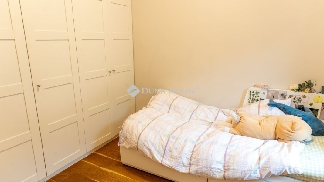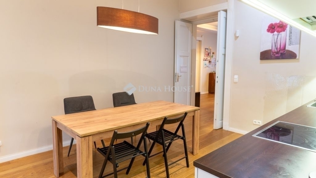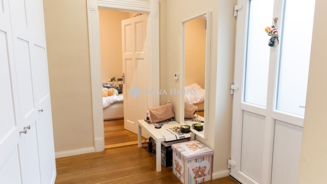 A lakás ablakai csendes utcára néznek, így a belvárosi elhelyezkedés ellenére igazán nyugodt, élhető környezetet nyújtanak.