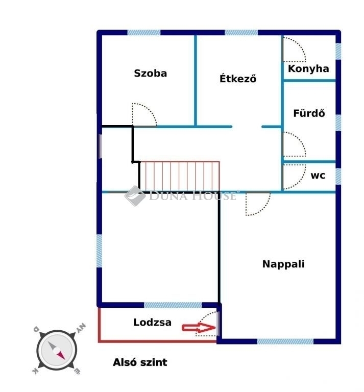 A bejáratot biztonsági bejárati ajtó védi ráccsal felszerelve.