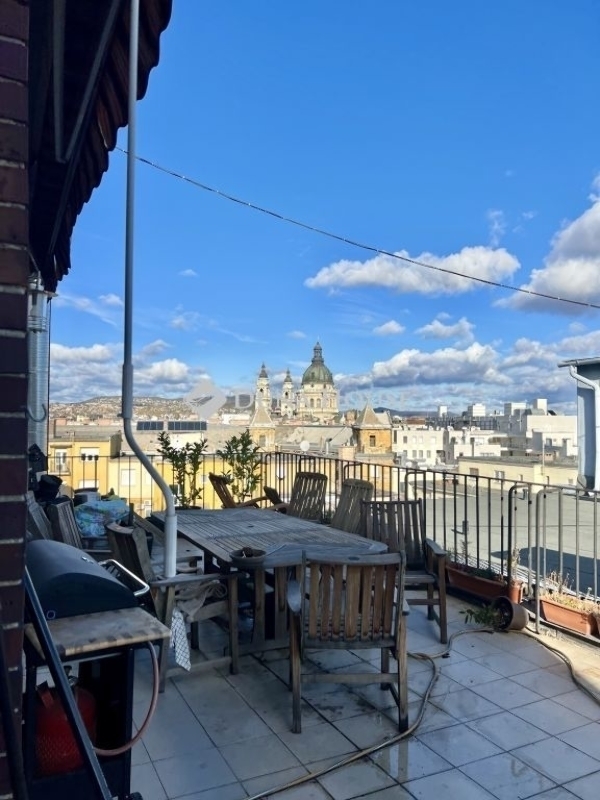 Eladó panorámás lakás a Madách téren terasz, fény, városi életérzés!A belváros szívében, a közkedvelt Madách téren kínálunk eladásra egy 75 m²-es, 7. emeleti, 3 szobás lakást, lenyűgöző panorámával a Bazilikára.A lakás tágas és világos, a hatalmas teraszról páratlan kilátás nyílik Budapest ikonikus épületeire. A házközponti fűtés egyedi méréssel alacsony rezsit biztosít, a modern elosztás pedig ideális akár családnak, akár befektetésnek.A városi élet minden előnye karnyújtásnyira: éttermek, kávézók, kulturális központok és a Deák tér néhány lépésre találhatók.Főbb jellemzők:-75 m² 3 szoba nagy terasz- 7.emelet, nem tetőtér, liftes ház-Bazilikára néző panoráma-Házközponti fűtés, egyedi mérővel-Kiváló elhelyezkedés, remek közlekedésEz a lakás ritka lehetőség a belvárosban igazi városi oázis kilátással.