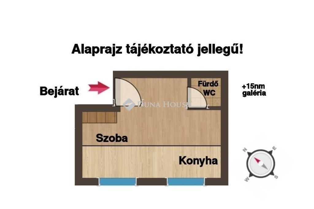 Méreteit tekintve 23 nm alapterületű a lakás, a bejárati ajtón belépve megérkezünk egy amerikai konyhás nappaliba, amely 2 ablakkal rendelkezik, így rendkívül világossá teszi az ingatlant. A nappali részből nyílik egy teljes értékű fürdőszoba. Innen a lépcsőn felérve egy 15 nm-es álló galéria részre érkezünk, ahol a belmagasság 175 cm. Tehát teljes értékű hálószoba funkciót tölt be.