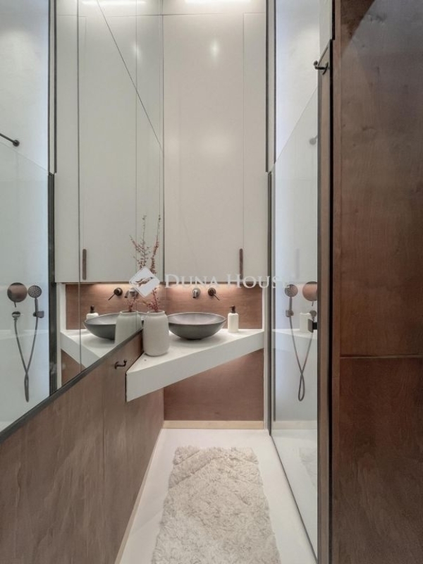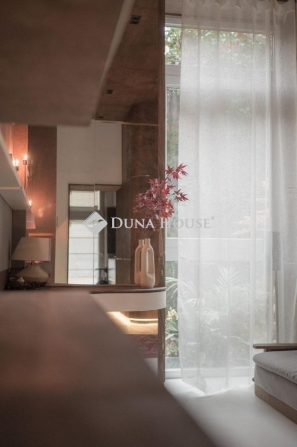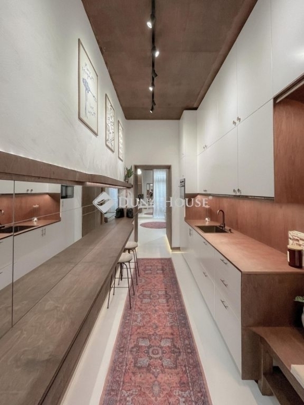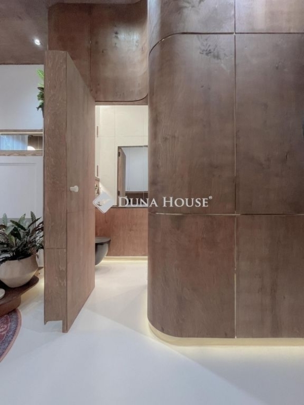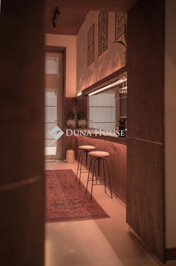 A frissen felújított ingatlan mind műszakilag, mind esztétikailag megújult. A lakásba belépve a hangulatos előszoba-konyha és étkező részbe érkezünk, ahol a mennyezetig érő beépített bútorok sok pakoló részt rejtenek. A letisztult munka- és étkezőpult, valamint az ötletes előszoba rész gondoskodik a meghitt hangulatról.