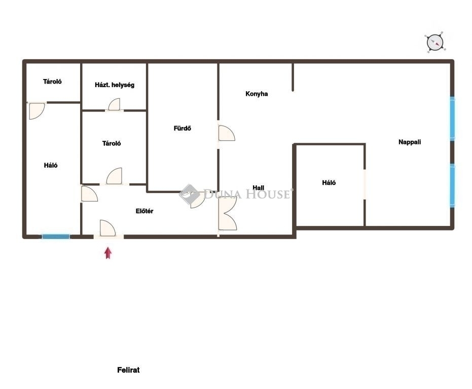 A tágas, világos ingatlan utcára és udvarra is néz, elosztása rendkívül praktikus:-előszoba-nappaliétkezőkonyha (utcai nézet)-2 hálószoba-2 gardrób (egyik háztartási helyiséggel)-tágas, káddal felszerelt fürdőszoba. A lakás különlegessége, hogy két külön lakrész is kialakítható benne (kb. 30 és 50 m²), mivel két külön villany- és vízórával rendelkezik. Tartozik hozzá egy 20 m²-es, száraz pince is.