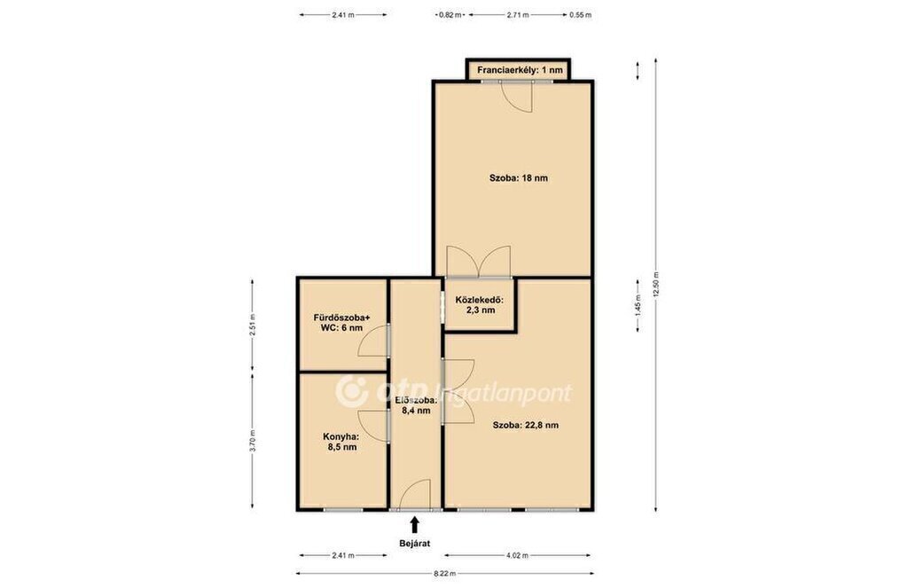 A lakás két tágas, különnyíló szobával rendelkezik, amelyek kényelmes életteret biztosítanak. Az étkezős konyha a mindennapok központja, míg a fürdőszoba és a WC egy helyiségben kapott helyet.