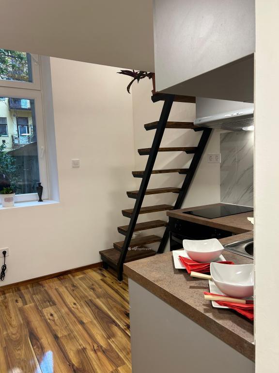 Eladó Budapest 7. kerületének Városligethez közeli részén 2 db 14 ill. 15 m2 alapterületű, földszinti kis lakás egy helyrajzi számon, ügyvéd általi megosztással. A lakások egy közös előtérből nyílnak és CSENDES belső udvarra néznek. A lakásokban/lakrészekben új, minőségű beépített, gépesített ( beépített sütő, főzőlap, filteres páraelszívó, mosogató csapteleppel, teljes alsó és felső konyhai bútorzattal, antracit szürke, asztalos által készített, minőségi gépesített konyhabútor ( sütő, 2 lapos főzőlap, beépített sütő), a fürdőszobák minőségi, esztétikus burkolattal ( szürke árnyalatú járólap és csempézet) ,dizájn szaniterekkel , csaptelep, zuhanyszettel felszerelve, természetesen villanybojlerrel, törölközőszárítós fűtőtesttel, és szellőztetés kialakításával megoldva, ill. fürdőszobai kézmosó szekrénnyel, tükörrel, tükör feletti és egyéb minden igényt kielégítő világítással, az épített zuhany üvegfallal ellátva ( ez kb 1 héten belül lesz felszerelve) konnektor, az alsó és a felső szinten is kialakított, falba süllyesztett TV/INTERNET kiállásokkal, teljes világítási rendszer/lámpák ( a galéria alatti részeken süllyesztett LED világítótestekkel felszerelve.