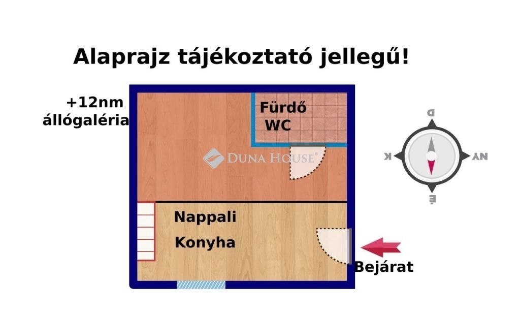 2. lakás: 33nm alapterületű +12nm állógaléria, így összesen 45nm-es hasznos lakóterületű lakás