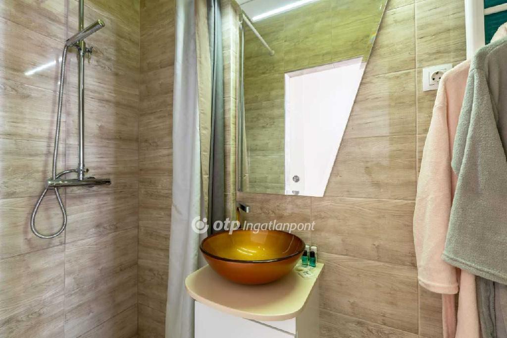 Heating is electric, and the apartment is equipped with air conditioning. Roller shutters and a built-in kitchen are also included. The common cost is only 10 000 HUF/month, which already includes unlimited water usage.