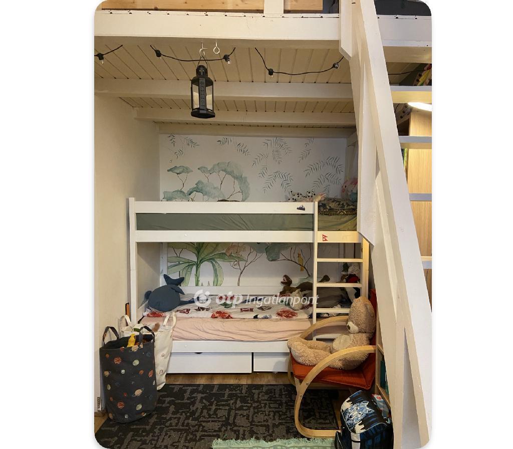 The building is well-maintained with a charming, quiet inner courtyard. The apartment is easily accessible yet offers privacy. Its interiors are bright, clean-lined, and thoughtfully designed. The generous ceiling height creates an airy feel, allowing for the construction of a brand-new, sturdy gallery that can serve as an additional bedroom or children’s room. The two-level children’s room is especially practical, maximizing the available space.