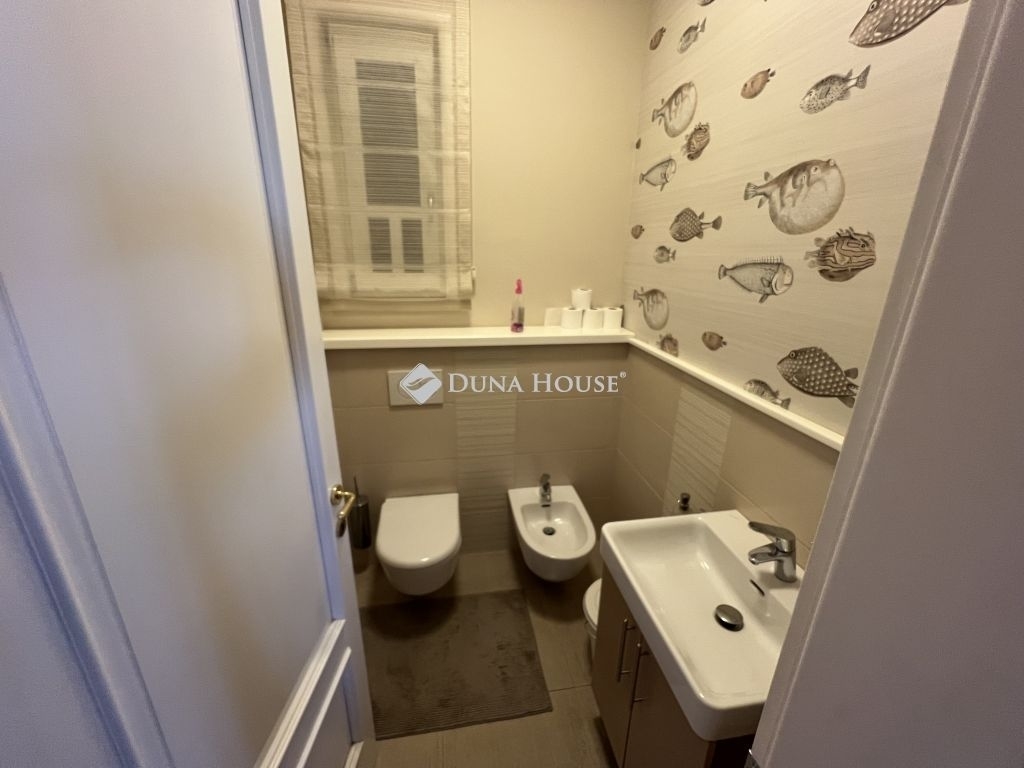 Kivételes lehetőség Erzsébetváros építészettörténeti ritkaságában!A Deák tér irányába tekintve Gellérthegyre panorámás, Wälder Gyula és Árkay Aladár tervei alapján 1939-re felhúzott, 11 egymásba fonódó, árkádos, vörösen izzó homlokzatú, neobarokk kovácsoltvas erkélykorlátokkal és art deco pártázattal díszített, Madách-házak épületcsoport preferált házának köztes emeletén eladó egy 82 m2-es, a műszaki és esztétikai felújítás során átalakított, tágas terekkel rendelkező, fényárban úszó, két irányba is PANORÁMÁS, franciaerkélyekkel tűzdelt lakás!A 2015-ben történt, mindenre kiterjedő felújítás eredményként kialakított kb. 50 m2-es amerikai konyhás nappalit határoló üvegfelület a Budai hegyek és a Gellérthegy irányába egyaránt elvehetetlen kilátást enged, akárcsak a szeparált, jól berendezhető, saját gardróbszobával rendelkező, franciaerkélyes, tágas hálószoba, ami a Deák tér Gellérthegy irányába néz.A lakás zuhanyzós, egyedileg gyártott bútorokkal felszerelt fürdőszobája kellően nagy, mosó- és szárítógépnek is helyet ad, mellette szeparált mellékhelyiségben wc, bidé, mosdó kapott helyet, mindkét mellékhelyiség ablakon szellőztethető!A lakás tárolásra remekül használható előszobája és közlekedője vezet a nappaliba.Műszaki felszereltségét tekintve a lakás fűtése, meleg vízellátása a ház központi kazánjáról megoldott; elektromos vezetékek cserélve lettek, elbírják a beépített konyha modern gépeit (tűzhely, sütő, mikró, mosogatógép), a lakás klímáit (nappaliban és hálóban egyaránt van).A lakás fa ablakai és belső nyílászárói a felújítás során megújult állapotukat megőrizték, a megtartott és felújított eredeti fa, kitámasztható redőnyök kifogástalanul működnek.A nappali, háló igényes fa burkolata szép állapotú, akárcsak a mellékhelyiségek padozati és oldalfali burkolatai.Az egyedileg gyártott beépített konyhabútor belesimul a nappaliba, kellő helyet biztosít tárolásra is.A liftes ház portaszolgálatos bejárata igazi kuriózum: azon kívül, hogy AKADÁLYMENTES, a fogadócsarnok egy télikertet magában rejt.A házban rövidtávú kiadás megengedett.Az azonnal birtokba vehető, bútorzatai nagy részével együtt eladó lakást kizárólagosan kínáljuk egyedi értéket kereső érdeklődőinknek, így további konkrétumok és megtekintés miatt bizalommal keressen!